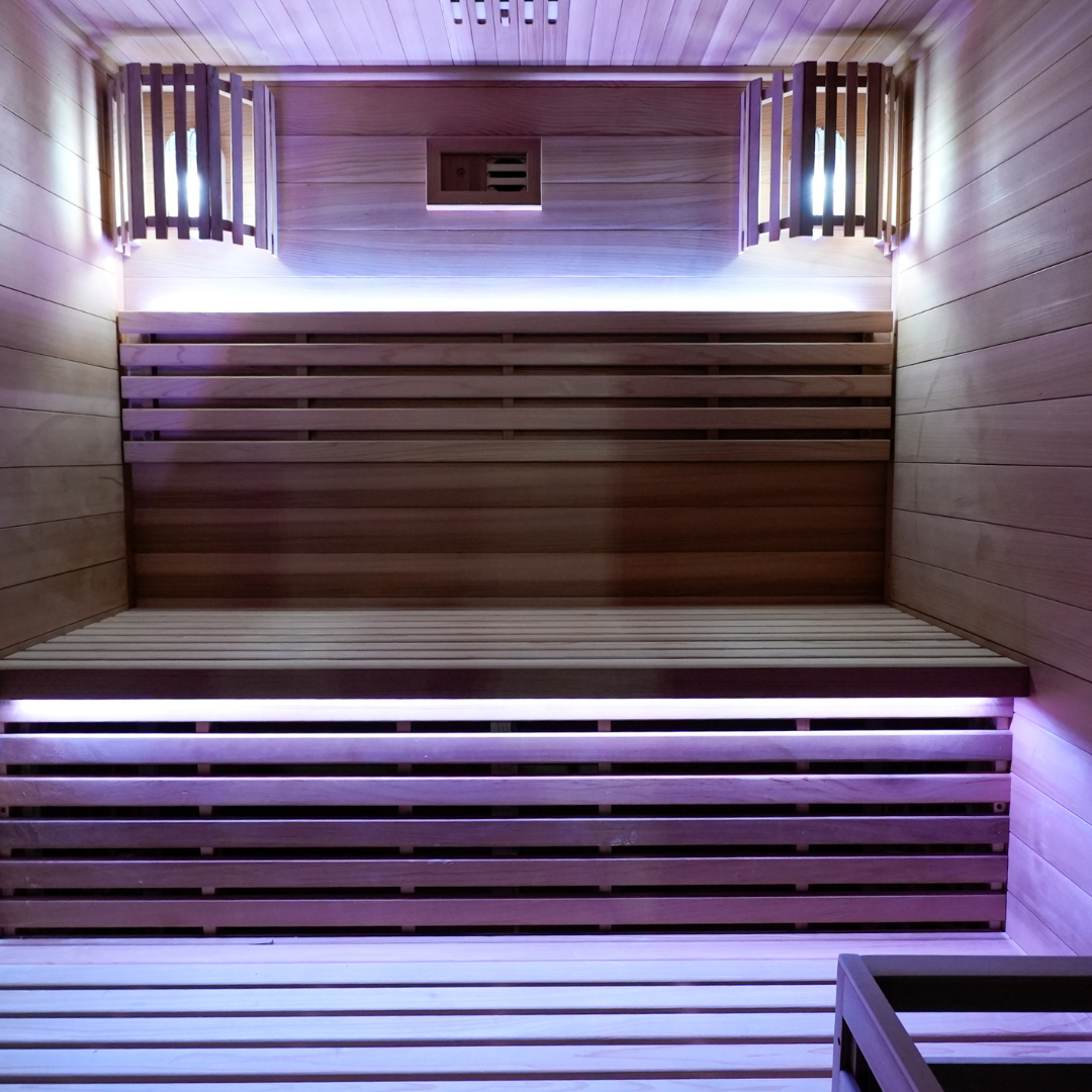 Traditional saunas typically operate between 70–100°C (158–212°F), providing an authentic and deeply relaxing heat experience. The temperature is adjustable depending on your comfort.
