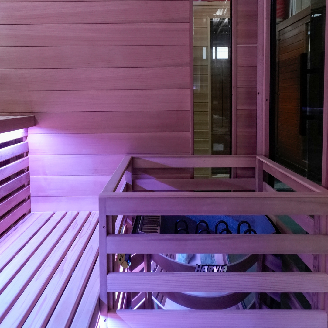 Tiered benches allow users to choose their preferred heat level, with upper benches offering warmer temperatures. This design improves heat circulation, maximizes seating capacity, and enhances comfort, giving everyone a more flexible and relaxing sauna experience. The ability to move between levels also promotes better circulation and deeper muscle relaxation, making tiered seating a key feature of a premium sauna.