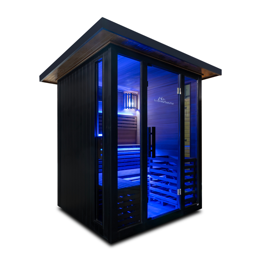Every material used is selected to handle sun, rain, wind, and snow, making the sauna fully resilient in harsh outdoor conditions.